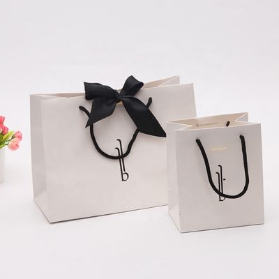 Recyclable Wholesale Custom Printed Your Own Logo Packaging White Brown Kraft Gift Craft Shopping Paper Bag With Ribbon Handles